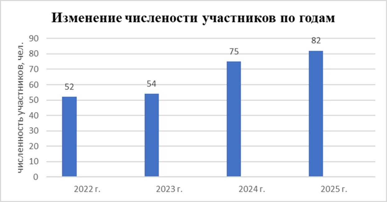 Изменение численности участников проекта по годам представлены на рисунке 1.