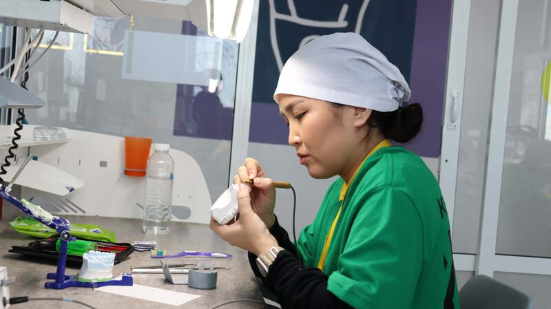 Ещё одна компетенция чемпионата – «Стоматология ортопедическая». Сегодня участники выполняли сложные задания по моделированию зубов и созданию бюгельного зубного каркаса. Завтра им предстоит за шесть часов изготовить детский ортодонтический аппарат. Соревнования проходят в современных мастерских колледжа, оснащённых новейшим оборудованием.