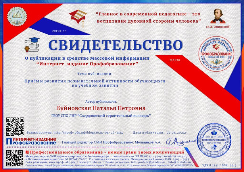 Автор, разместивший статью в интернет-издании, в случае аттестации или подтверждения авторства, может заказать электронное свидетельство о публикации в СМИ «Интернет-издание Профобразование».