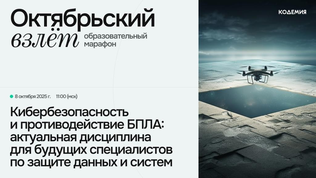 Уже завтра состоится четвёртый вебинар марафона «Октябрьский Взлет» посвящён ключевым аспектам кибербезопасности в контексте противодействия БПЛА. Мы обсудим, как образовательным учреждениям ответить на запрос рынка и готовить профессионалов, владеющих не только техническими, но и этико-правовыми компетенциями.