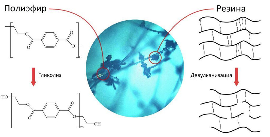 Обычно переработка использованных шин и пластика связана со значительными трудностями и затратами. Нужно разделять компоненты, добавлять специальные вещества, предотвращающие преждевременное отверждение, и решать вопросы энергозатрат. Новый способ российских исследователей позволяет одновременно перерабатывать и полиэфир, и резину в одном реакторе. Предложенный подход особенно актуален для отходов полиэфирного шинного корда, которые извлекают из шин при их переработке. В процессе переработки из резины происходит выделение технического углерода, который выполняет роль стабилизатора, предотвращая преждевременное отверждение смолы. Это свойство позволяет полностью отказаться от применения дополнительных химических стабилизаторов, что составляет основное преимущество новой технологии.