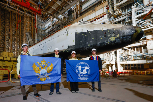 На космодроме Байконур в рамках экспедиции Студенческого экспедиционного корпуса «Команда Арктики» состоялась церемония вручения корпусу флага, который находился на борту Международной космической станции. Заместитель главы администрации города Байконур Николай Петрович Адасев лично передал реликвию участникам делегации.