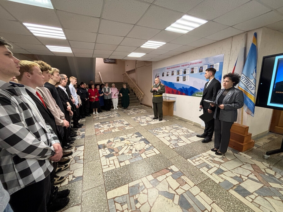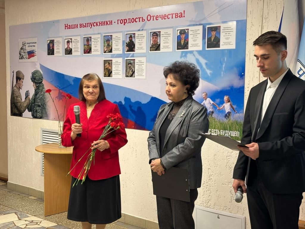 «Мы открываем "Стену Памяти", с которой на нас смотрят наши ребята – выпускники, которые были такими же, как вы. Они учились, всесторонне развивались, участвовали в мероприятиях, становились гражданами своей Родины. И когда пришло время встать на защиту страны, не задумываясь, сделали свой выбор и вошли в историю. Мы гордимся каждым из них, помним каждого и будем помнить всегда. И сегодня говорим всем матерям, женам, сестрам, отцам, братьям – спасибо!» - обратилась директор техникума Н. В. Тюкалова и призвала студентов и всех собравшихся соответствовать тому подвигу, который совершили выпускники.